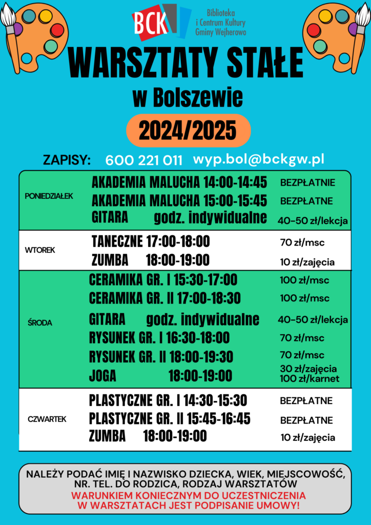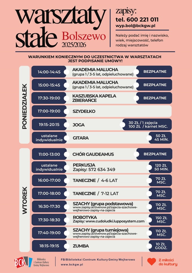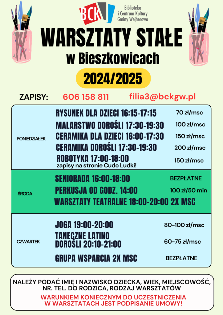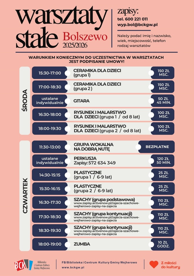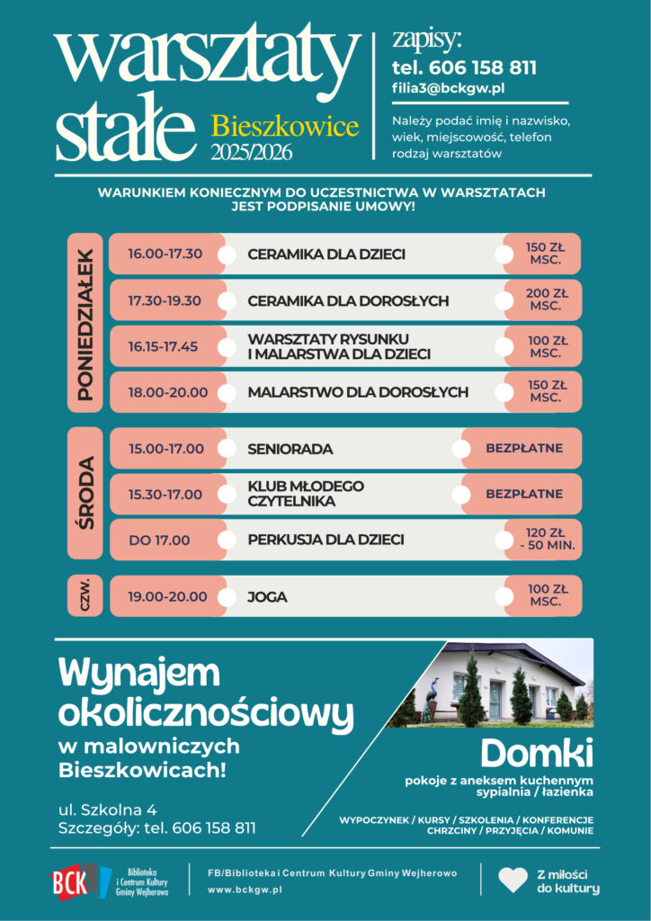WARSZTATY STAŁE 2025 19_2025_1 cennik warsztatów CENNIK WARSZTATÓW http://bckgw.pl/wp-content/uploads/2025/09/19_2025_1-cennik-warsztatów.pdf