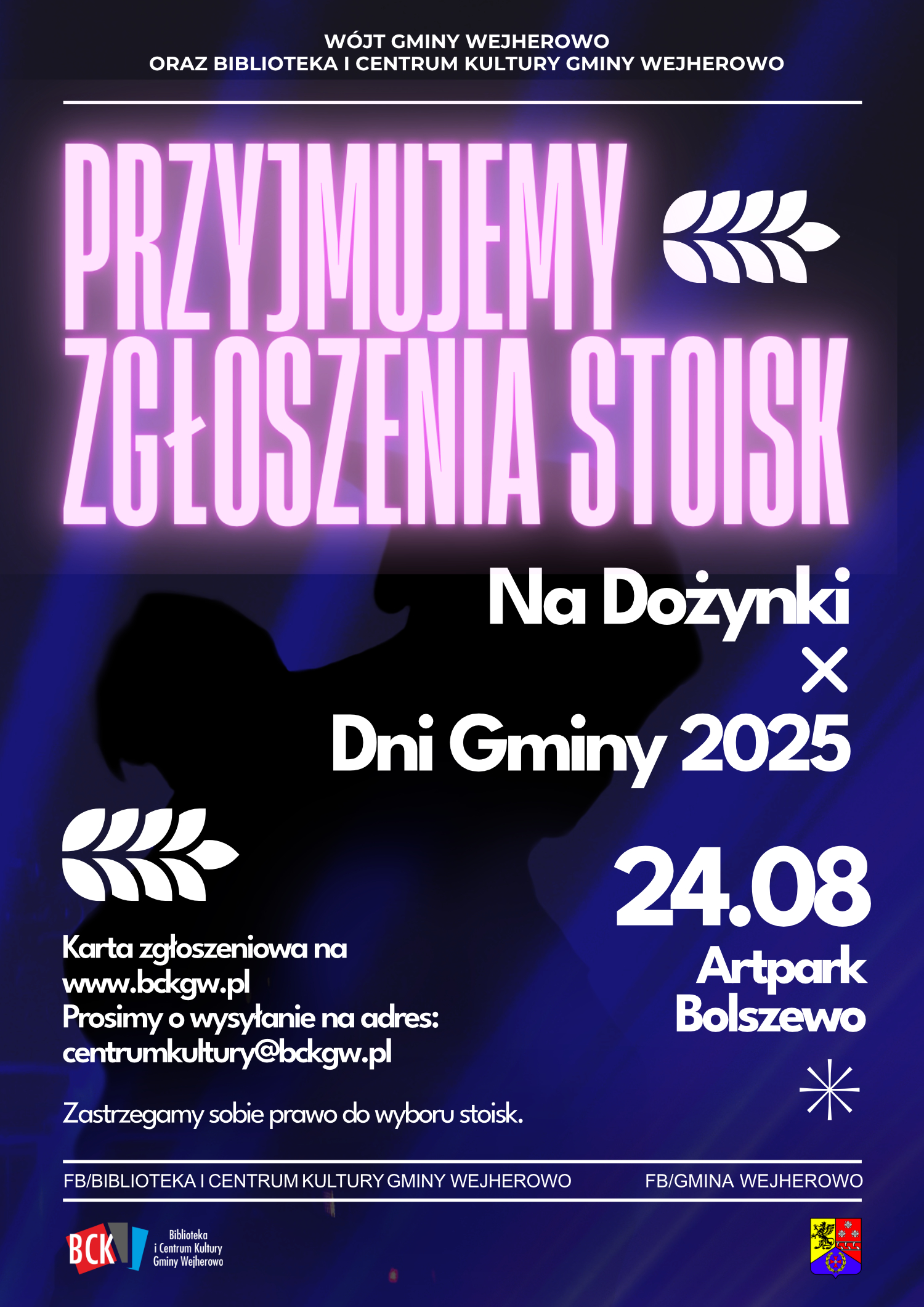 Przyjmujemy zgłoszenia stoisk na Dożynki i Dni Gminy Wejherowo 2025 ❤️💙 KARTA ZGŁOSZENIOWA – Dni Gminy – stoisko